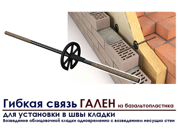 Гибкая связь-анкер Гален БПА из базальтопластика предназначена для соединения внутреннего, теплоизоляционного и облицовочного слоев кирпичной кладки в малоэтажном строительстве.
