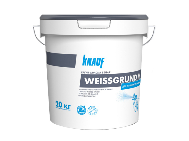 Грунт-краска белая высокоукрывистая тиксотропная машинного нанесения Knauf Вайсгрунд М, 20 кг