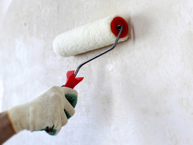 С помощью валика, щётки, кисти или краскопульта обеспечить равномерное распределение грунтовки на поверхности.