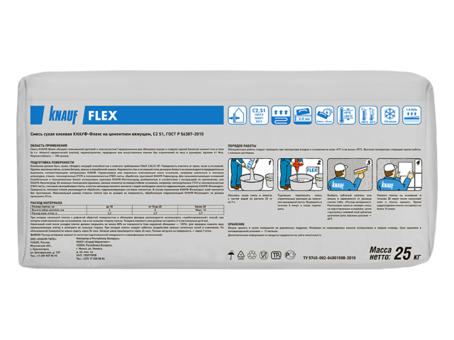 Клей плиточный эластичный Knauf Флекс для керамической плитки, керамогранита и камня, 25 кг