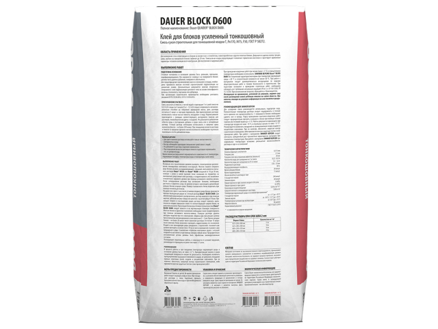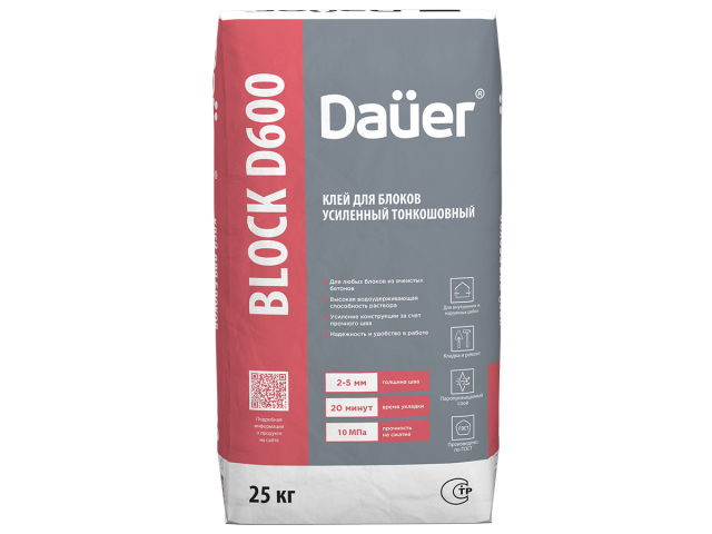 Клей монтажный тонкошовный Dauer QUADER® BLOCK D600 (25 кг)