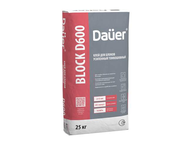 Клей монтажный тонкошовный Dauer QUADER® BLOCK D600 (25 кг)