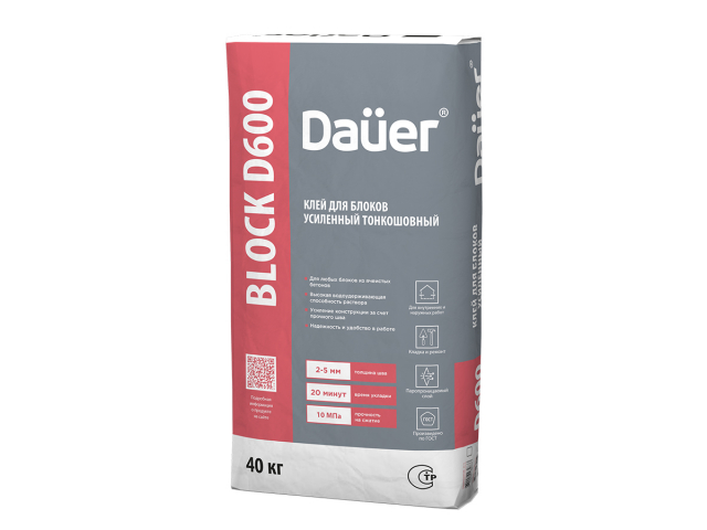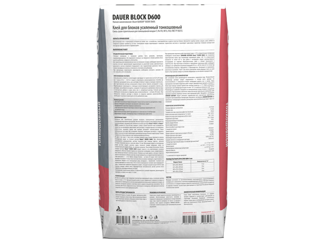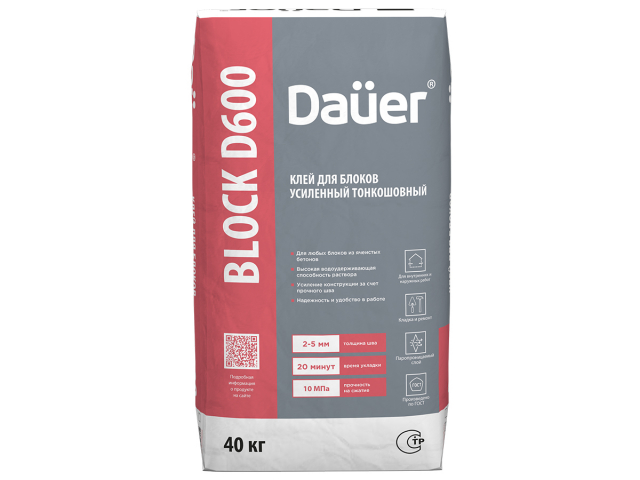 Клей монтажный тонкошовный Dauer QUADER® BLOCK D600 (40 кг)