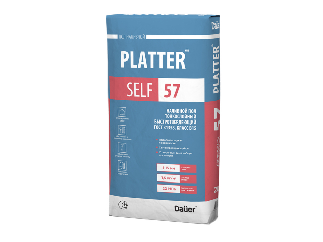 Наливной пол тонкослойный быстротвердеющий Dauer PLATTER® SELF 57, 20 кг