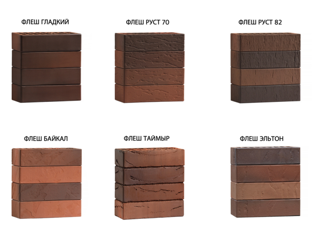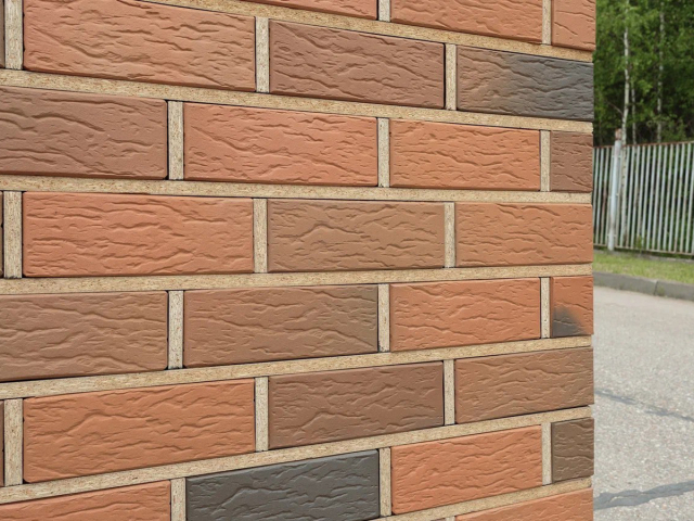 Кирпич лицевой керамический Volgabrick Флэш Руст №70 с рустификатором - 250х120х88 мм