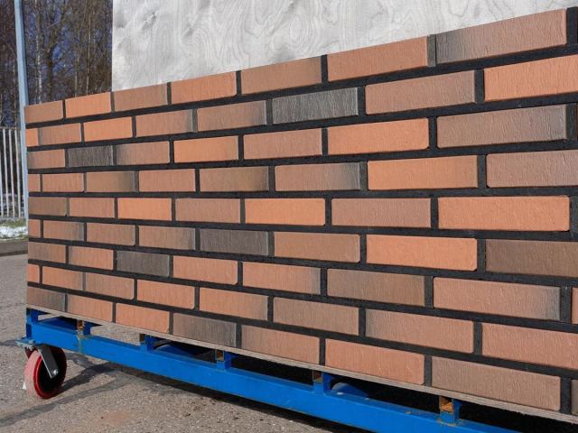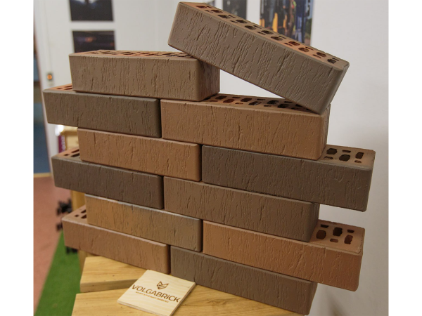 Кирпич лицевой керамический Volgabrick Флэш Руст №82 вертикальная накатка - 250х85х65 мм