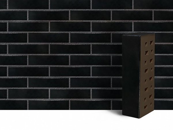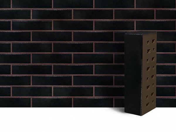 Клинкерный кирпич ЛСР Черный «Рейкьявик» глянцевый гладкий - 250x85x65 мм