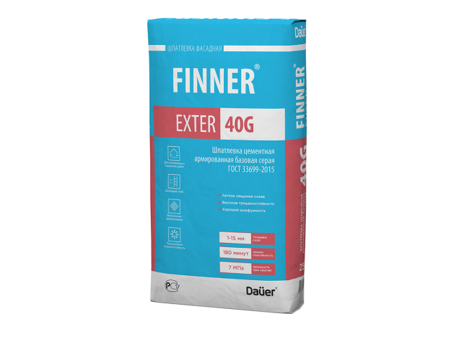 Шпатлевка цементная армированная Dauer FINNER® 40G (серая), 25 кг