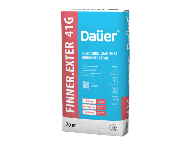 Шпатлевка цементная финишная Dauer FINNER® 41G (серая), 20 кг