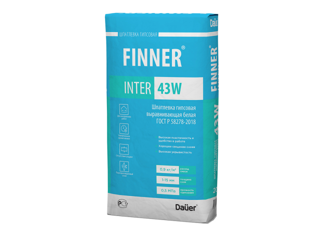 Шпатлевка гипсовая выравнивающая Dauer FINNER® 43W (белая), 20 кг