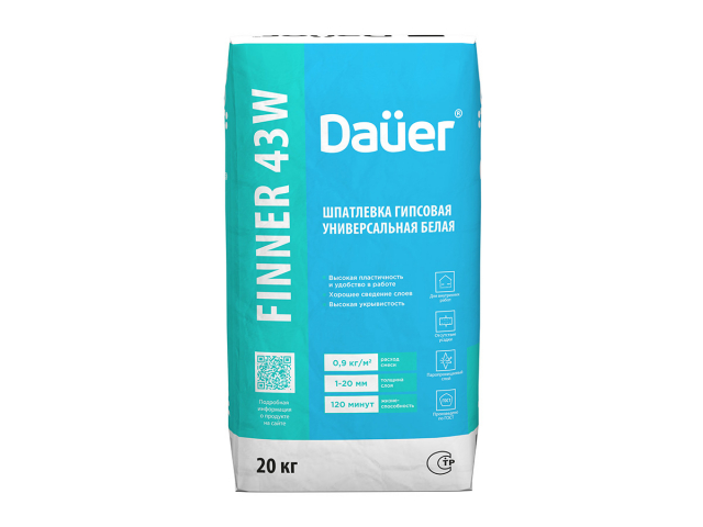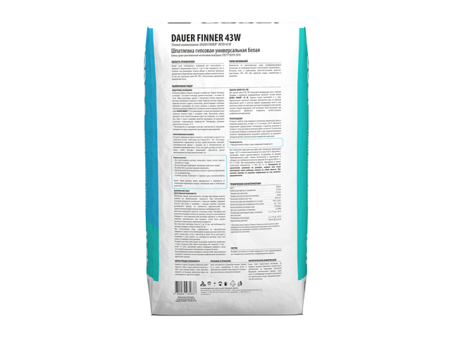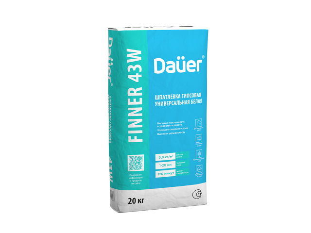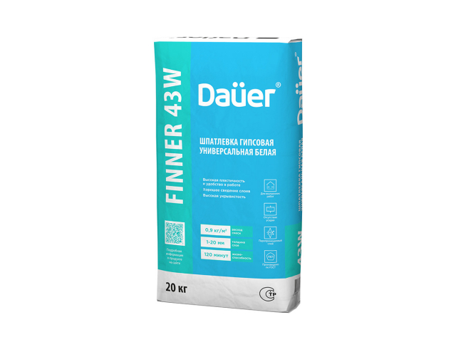 Шпатлевка гипсовая выравнивающая Dauer FINNER® INTER 43W (белая), 20 кг