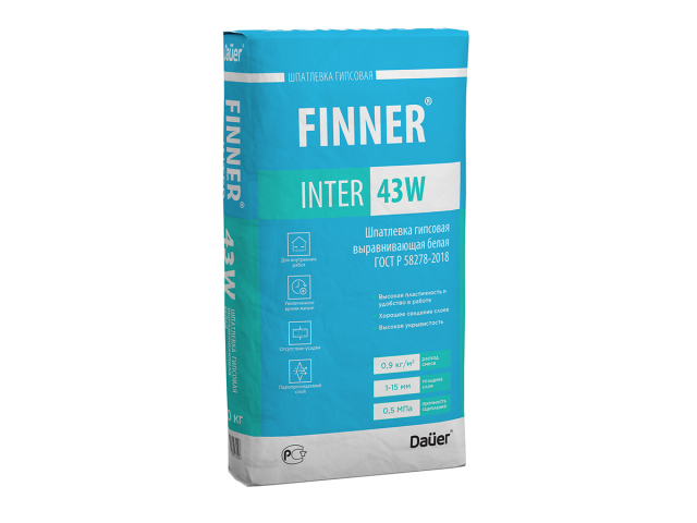 Шпатлевка гипсовая выравнивающая Dauer FINNER® 43W (белая), 20 кг