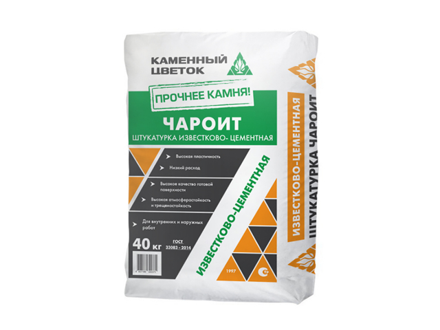 Штукатурка цементно-известковая Каменный цветок "ЧАРОИТ", цвет серый, 40 кг