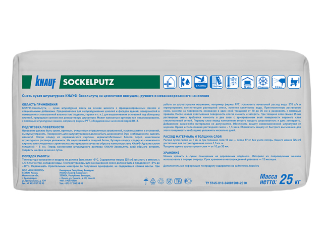 Штукатурка цементная цокольная Knauf Зокельпутц, 25 кг