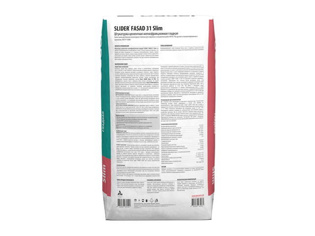 Штукатурка цементная мелкофракционная гладкая Dauer SLIDER® FASAD 31 Slim, 25 кг