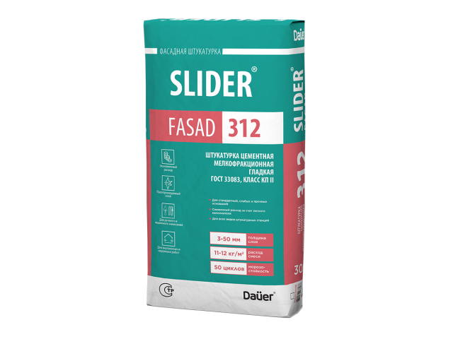 Штукатурка цементная мелкофракционная гладкая Dauer SLIDER® FASAD 312, 30 кг
