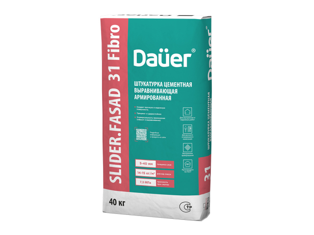 Штукатурка цементная выравнивающая армированная Dauer SLIDER® FASAD 31 Fibro, 40 кг