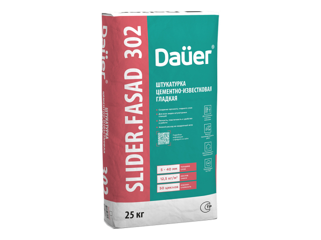 Штукатурка цементно-известковая гладкая Dauer SLIDER® FASAD 302 (25 кг)