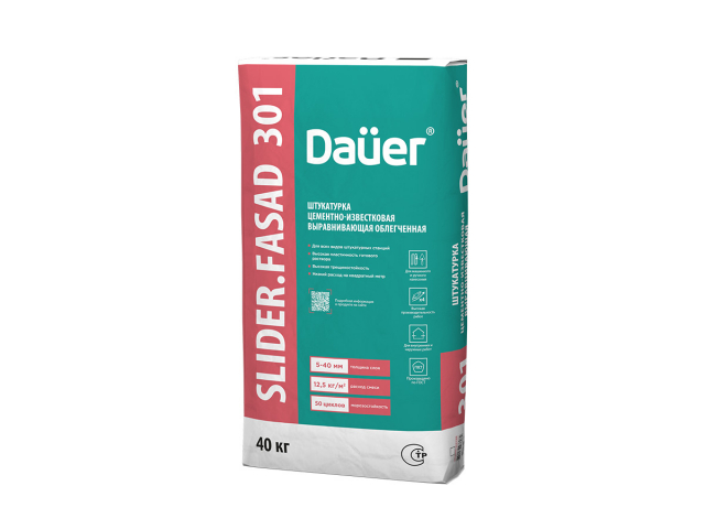 Штукатурка цементно-известковая выравнивающая Dauer SLIDER® FASAD 301 (40 кг)