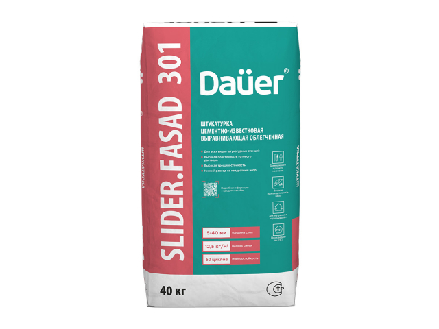 Штукатурка цементно-известковая выравнивающая Dauer SLIDER® FASAD 301 (40 кг)