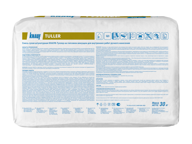 Штукатурка гипсовая с увеличенными сроками схватывания Knauf Туллер, 30 кг