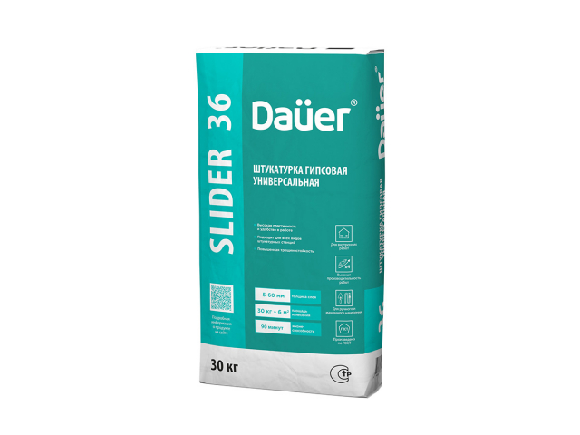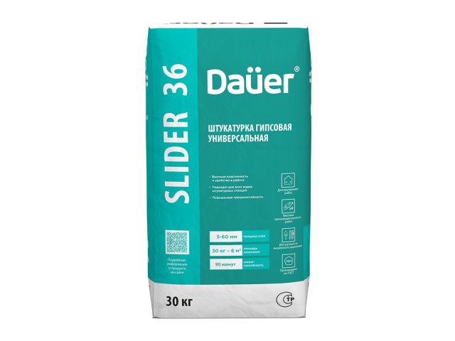 Штукатурка гипсовая универсальная Dauer SLIDER® INTERIER 36 (серая), 30 кг