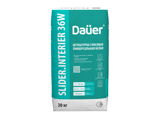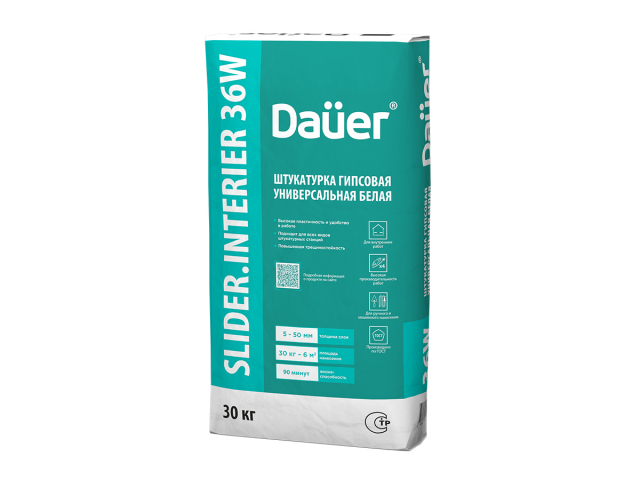 Штукатурка гипсовая универсальная Dauer SLIDER® INTERIER 36W (белая), 30 кг