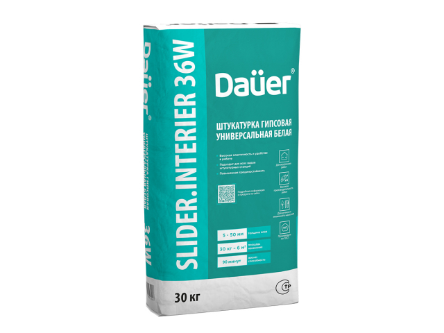 Штукатурка гипсовая универсальная Dauer SLIDER® INTERIER 36W (белая), 30 кг
