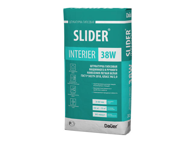 Штукатурка гипсовая универсальная Dauer SLIDER® INTERIER 38W (белая), 30 кг