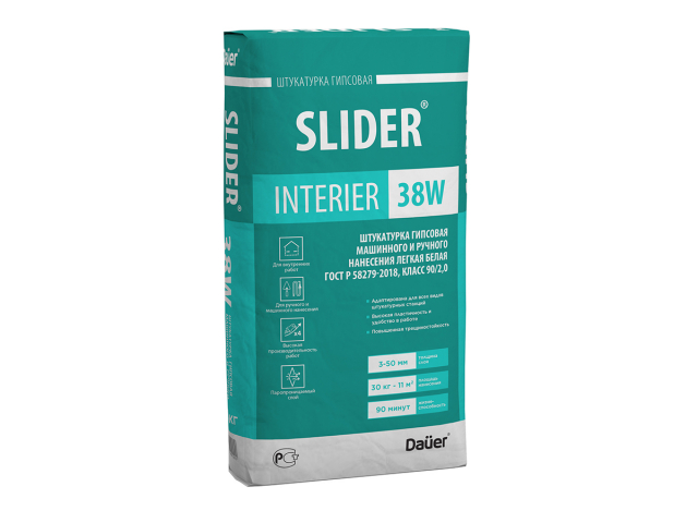 Штукатурка гипсовая универсальная Dauer SLIDER® INTERIER 38W (белая), 30 кг