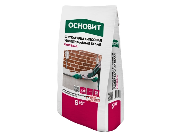 Штукатурка гипсовая универсальная ОСНОВИТ ГИПСВЭЛЛ PG25 W БЕЛАЯ (5 кг)