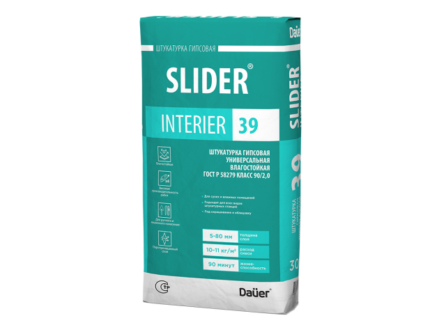 Штукатурка гипсовая универсальная влагостойкая Dauer SLIDER® INTERIER 39 (серая), 30 кг