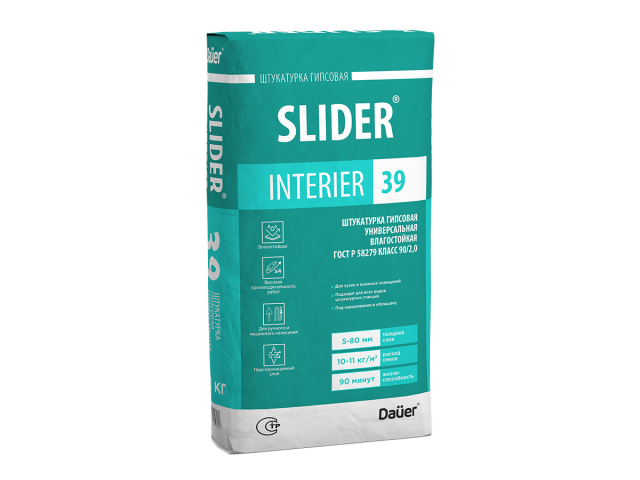 Штукатурка гипсовая универсальная влагостойкая Dauer SLIDER® INTERIER 39 (серая), 30 кг