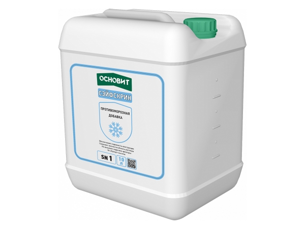 Противоморозная добавка ОСНОВИТ СЭЙФСКРИН SN1 предназначена для предотвращения замерзания воды в бетонных и цементных растворах при возведении монолитных и сборно-монолитных бетонных и железобетонных конструкций, обеспечивая гидратацию смеси в условиях отрицательных температур до начала тепловой обработки или термосного выдерживания. Рекомендуется для применения с кладочными смесями, теплоизоляционными кладочными смесями, монтажными смесями. Сохраняет жизнеспособность раствора. Не вызывает коррозию металла. Не меняет внешний вид и природную фактуру материала.