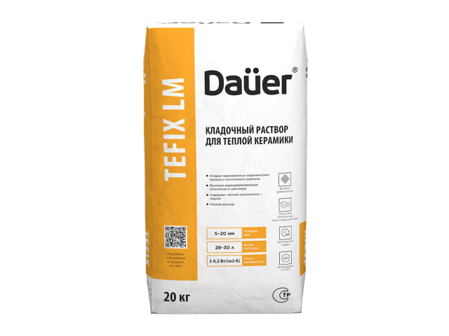 Кладочный раствор теплоизоляционный DAUER QUADER® TEFIX LM, 20 кг