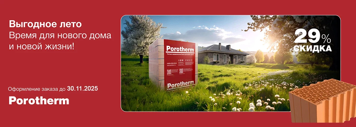 Планируете строительство собственного дома? Сейчас самое время воспользоваться эксклюзивным предложением и получить скидку до 29% на керамические блоки Porotherm при оформлении заказа до 30 ноября 2025 года.